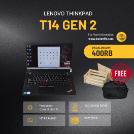 Lenovo ThinkPad T14 2nd Gen Laptop Performance Durability Spesifikasi : Processor Intel Core i5 Gen 11 RAM 16GB Storage SSD NVME 256GB Wifi Intel AX201 11ax, 2×2 Bluetooth 5.0 Fingerprint Touchscreen Camera 720p + IR with ThinkShutter 2x USB3.1 Gen1 (1x Always On) 1xUSB-C 3.1 Gen1 (Power delivery and DisplayPort) 1x USB-C 3.1 Gen2 /… selengkapnya